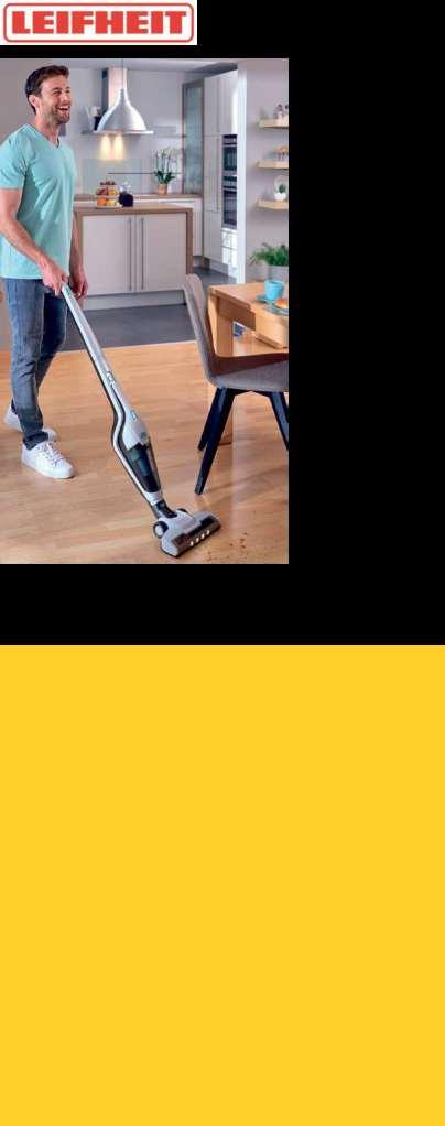 Streifenfreies Absaugen ohne Tropfen, 360° Grand verwendbar, Akku-Laufzeit: bis zu 38 min (110m²), kombinierbar mit allen Leifheit ClickSystem-Stielen
