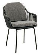85 x 80, H 88 cm; Rope: Schwarz; Gestell: Stahl pulverbeschichtet Schwarz; Inkl. Kissen, Bezug: Dunkelgrau; In zwei Farben verfügbar 560€