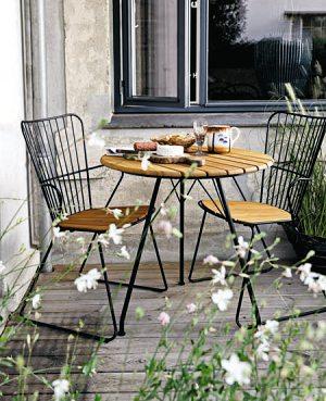 H 77 cm Platte: Teak; Gestell: Stahl pulverbeschichtet Schwarz 160x90, H 76cm; 1.590€ 220x100, H 76cm; 2.190€
