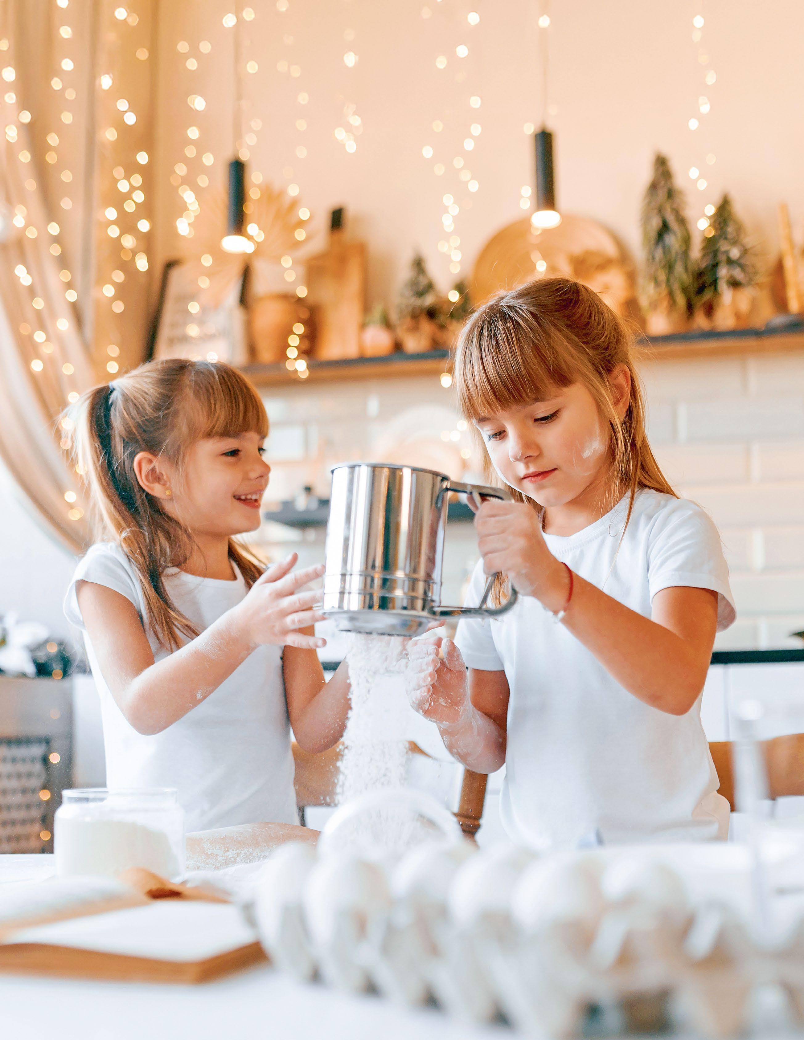 die Kleinen mit großen Augen in der Küche und helfen fleißig mit. Gemeinsam wird geschnuppert, genascht und gelacht. Genau darum geht’s in der Weihnachtsbäckerei.