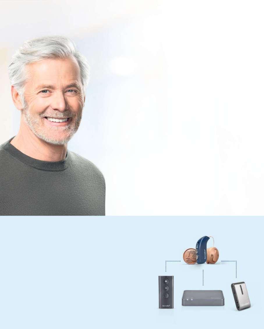Mit optional erhältlichem Zubehör als Ergänzung lässt sich Ihr gutes Hören noch weiter verbessern, etwa durch noch besseres Verstehen beim Fernsehen dank eines TV-Adapters, eine unauffälligere Bedienung der Hörgeräte per Fernbedienung oder mit 3in1-Geräten wie Sound-Clips, die zugleich externes Mikrofon, Fernbedienung und Audio-Streamer in einem sind.