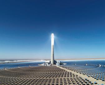 In China wurde eine 750-Megawatt-Solaranlage installiert, die Tag und Nacht Strom erzeugt. Möglich machen das rund 12.000 computergesteuerte Spiegel, die in Kreisform angelegt sind. In der Mitte steht ein Turm mit einem Receiver – auf diesen fokussieren die Spiegel die gesamte Energie. Der Receiver enthält eine Flüssigkeit mit einem Salzgemisch, die sich stark erhitzt und die Wärme für längere Zeit speichert. Die salzige Flüssigkeit wird für die Dampferzeugung genutzt und treibt damit die Turbinen an – ein Generator wandelt die Energie in Strom um. Mit dem thermischen Speicher kann tagsüber und in der Nacht Energie erzeugt werden.