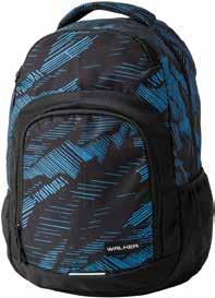 Hauptfach mit geräumigem Innenfach, zusätzliches Mittelfach, 2 Seitentaschen, atmungsaktives Rückenpolster, ergonomisch verstellbare Schulterriemen, retroreflektierende Elemte, verschiedene Farben, je