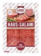 Loidl Kantwurst, Putensalami, Haussalami, Knoblauchsalami, Pfefferblock, Breakfast Bacon, Putenkantwurst, Käsewurst mit Pfeffer oder Bergsalami 75-g-Packung (= per kg 16,53)