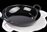 Aus hochwertigem, feueremailliertem Emaille. Schnittund kratzfest, geschmacksneutral, leicht zu reinigen und hat eine optimale Wärmeverteilung. Extra starke Ausführung, nahtlos gefertigt, spülmaschinengeeignet.