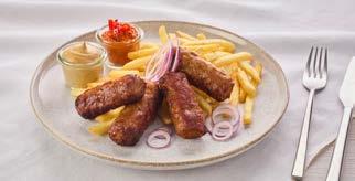 Mariniertes Schweinefleisch mit Zwiebel- und Paprikastreifen, in Bedienung per kg