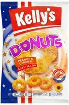 Kelly‘s Erdnuss/Linsen Snips oder Kelly‘s Donuts Peanut Caramel Verschiedene Sorten, 100-g–150-g-Packung (= per kg 9,93–14,90)