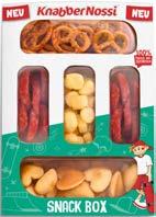 Die perfekte Mischung aus der beliebten KnabberNossi Salami Brezel, einer Auswahl an leckerem Knabbergebäck und gepufftem Käse! In Selbstbedienung per 80-g-Packung