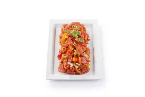 Mariniertes Schweinefleisch mit Zwiebelund Paprikastreifen. In Bedienung per kg 449
