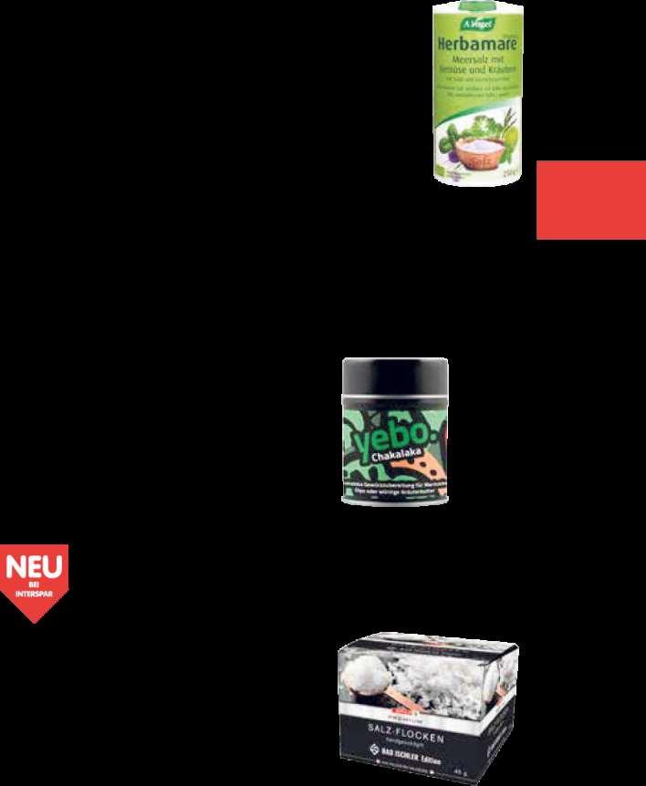 5 Stattpreise sind bisherige INTERSPAR-Verkaufspreise Aktionen n cht gült g im INTERSPAR-pronto und im NTERSPAR-take away Aufgrund des beschränkten P atzangebotes sind nicht alle Produkte im INTERSPAR am Schottentor verfügbar Gewürzmischungen Verschiedene 40-g-Dose 1 349 299 statt 3,99 25% billiger! A.Vogel Bio Herbamare Meersalz mit Kräutern, verschiedene Sorten, 250-g-Dose (= per kg 11,96) Lieferung nach ganz Österreich & Deutschland AUCH ONLINE Bestellen Exklusiv bei INTERSPAR! Ehrenwort Bio-Gewürz-Briefe Verschiedene Sorten, 4-g–22-g-Brief MENGEN Exklusiv bei INTERSPAR! weinwelt.at/gewürze