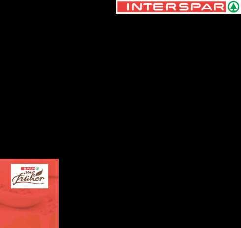 ALLES DA DA DA ANGEBOTE GÜLTIG BIS Mi, 10.5. Medieninhaber/Herausgeber/Redaktion: INTERSPAR Gesellschaft m.b.H Europastraße 3, 5015 Salzburg; Druck: Ferdinand Berger & Söhne GmbH, Druck- Verlags- und Herstellungsort: Horn Stattpreise sind bisherige INTERSPAR-Verkaufspreise. *Stattpreis st der vom Lieferanten/Herste ler unverbindlich empfohlene Verkaufspreis Wegen des beschränkten Platzangebots sind sperrige Produkte n den INTERSPAR-Märkten Wien-Mitte, Wien-Hauptbahnhof und Wien am Schottentor nicht lagernd Diese Produkte können Sie an d esen 3 Standorten bestellen Bitte wenden Sie sich an unsere Mitarbeiter vor Ort Kundenhotline: 0800/221120, Angebote gültig solange der Vorrat reicht Getränkepreise inkl Steuer, exkl Pfand Abgabe in Haushaltsmengen Druck- und Satzfehler vorbehalten je ng Marc