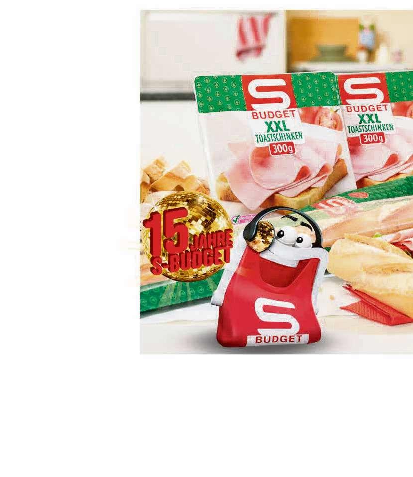 4 S-BUDGET Toastschinken XXL aus Österreich Gluten- und laktosefrei, ohne Geschmacksverstärker, 300-g-Packung (= per kg 10,63) S-BUDGET Ca. Pizzakä Ca. 022 S-BUDGET Maiskeimöl 1-Liter-Flasche