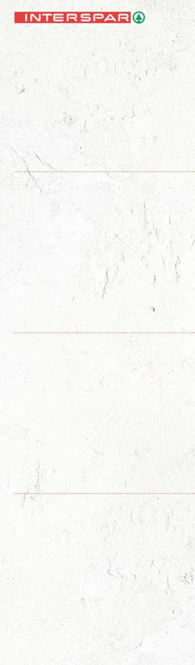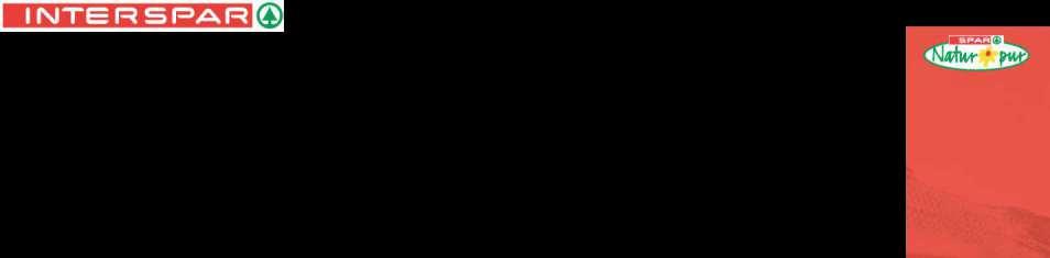 4 Angebote gü tig solange der Vorrat reicht Stattpreise sind bisherige INTERSPAR-Verkaufspreise °Prozentaktion gi t auch auf Aktionspreise, Monatssparer und IMMER BILLIG Artikel, ausgenommen Pfand Nicht gültig im Onlineshop nterspar at