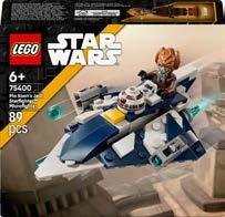 Plo Koons Jedi Starfighter hat ein Cockpit für eine LEGO Minifigur und 2 Shooter. Die LEGO Minifigur Plo Koon schwingt ein blaues Lichtschwert. Dieser Microfighter ist ein 11 cm langes Bauspielzeug. 89 Teile. Ab 6 Jahren.