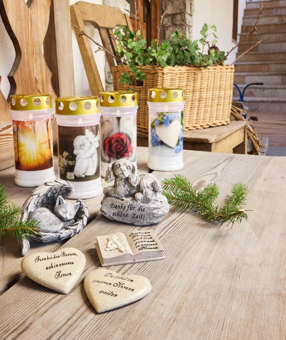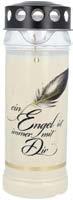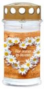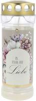 Notariell bestätigte Brenndauer von 7 Tagen. Rußarm und wetterfest. Im transparenten Becher, inkl. Metalldeckel mit Ablaufrinne. In verschiedenen Motiven.