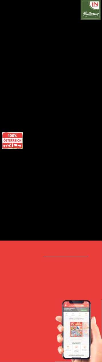 Konzentrat -60° C 3-Liter-Beutel Sorgt für klare, schlierenfreie Sicht, schützt Scheibe, Lack und Gummi, Polycarbonat verträglich, fächerdüsengeeignet. Ein 3 Liter Beutel ergibt verdünnt bis zu 9 Liter -10° C 2+1 G R ATI S 3 Liter 666 1 Packung 9,99 ab 3 Packungen je schnel en der ck-, engeeig Zirbe, 2+1 G R ATI S 1132 1 Stück 16,99 ab 3 Stück je 2+1 G R ATI S 5 Liter 1132 1 Stück 16,99 ab 3 Stück je 1200 Watt Zubehör 2999 * 52,99 illiger! Pfanne 20 cm N O Tasty Backformen »Merry & Bright« Hitzebeständig bis +230 °C, leicht per Hand zu reinigen, 3 Jahre Garantie. • Brownie-Backform 23 × 23 cm statt* 7,99 nur 3,99 • Springform 26 cm statt* 11,99 nur 5,99 • Kastenform 30 cm statt* 9,99 nur 4,99 • Muffinform 12er statt* 14,99 nur 7,49 Siesparen3,60! 1/2 P R E I S 399 statt* 7,99 -20% aufdenPreis von Do,27 10 bis Mi,2.11. Mi,2. nur1359 Siesparen3,40! Tefal Pfannen Hard Titanium Pro Titanium 3X Antihaftversiegelung, besonders widerstandsfähig und langlebig. Die THERMO-SIGNAL™Technologie zeigt an, wann die Pfanne die ideale Brattemperatur erreicht hat. Gleichmäßige Wärmever teilung, für alle Herdarten inkl. Induktion geeignet. • Pfanne 20 cm statt* 52,99 nur 29,99 • Pfanne 24 cm statt* 58,99 nur 34,90 • Pfanne 28 cm statt* 64,99 nur 39,90 68 x in Österreich 5 x in Vorarlberg • BREGENZ-VORKLOSTER, Heldendankstraße 22, gratis • DORNBIRN-MESSEPARK, gratis • FELDKIRCH-ALTENSTADT, Königshofstraße 79, gratis • FELDKIRCH-ILLPARK, gratis • BLUDENZ-BÜRS ZIMBAPARK, Almteilweg 1, gratis P P P P P interspar.at weinwelt.at interspar.at/restaurant interspar interspar