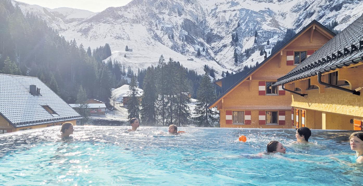 milie und Mitarbeiter(innen) pflegen einen achtsamen Umgang miteinander. Man ist per Du, wie es hier in den Bergen Tradition ist. Das Berghaus bietet dir alle Annehmlichkeiten eines 4-Sterne-Hotels und trumpft nicht zuletzt mit Gästebetreuung, einem Restaurant und einem Wellnessbereich mit Infinity-Pool auf. Nach einem bewegten Tag am Berg erwartet euch ein kleiner, feiner Wellnessbereich mit Dampfbad, Sauna und einem beheizten Außenpool. Die Sonnenterrasse und feine Ruheräume laden zum Relaxen oder Plaudern bei einem Glas Wein ein. Jedes der 40 Apartments ist für acht bis zwanzig Personen ausgelegt und mit einer hochwertigen Küche ausgestattet. Hier ist Platz für die ganze Familie, Zeit zum Entspannen – in den stylisch und rustikal eingerichteten Innenräumen oder auf der Terrasse. Das freundliche KinderÜbungsgelände verspricht erste spaßige Kurven im Schnee.