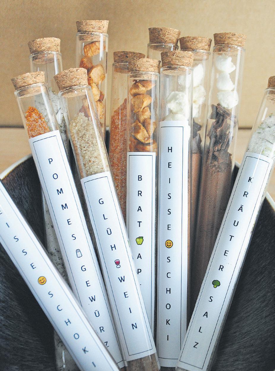 Sie verleihen dem Fest nicht nur die nötige Würze, sondern sorgen bei den Beschenkten hoffentlich auch für große Freude: selbst gemachte Salz- und Kräutermischungen. Sie sind schnell gemacht und ein originelles Mitbringsel. In individuell beschriftete Reagenzgläser gefüllt, werden sie zum besonderen Blickfang.