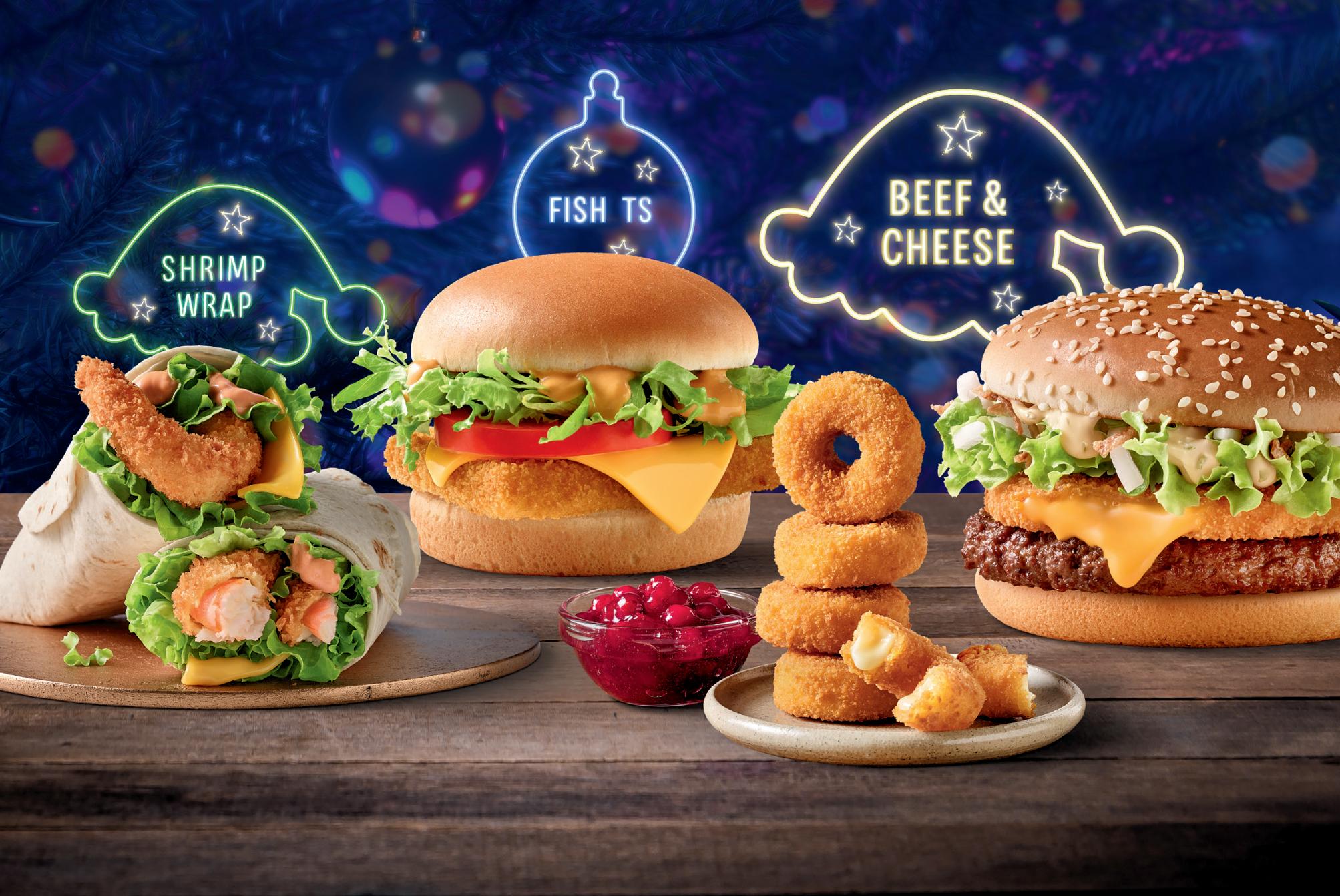 Den Anfang macht ab 15. November unser Ho-Ho-Hochgenuss mit dem saftigen Beef & Cheese mit seinem g‘schmackigen Käse Patty und dem Deluxe Junior für den kleinen Hunger. Fisch-Fans kommen dieses Jahr mit dem neuen Fish TS mit Cocktailsauce und dem köstlichen Shrimp-Wrap mit frischem Salat auf ihre Kosten.