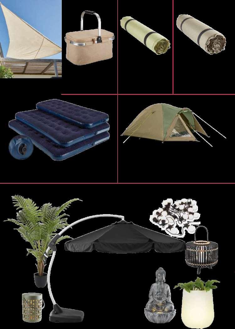 1) KUNSTPFLANZE TJELD Zement, Polyethylen, Polypropylen und Stahl Ø60 x H125 cm 2) LICHTERKETTE FESTING ABS-Kunststoff, Kupfer und PVC Inkl. 20 Glühbirnen. Für den Außenbereich geeignet. 6,7 m Leuchten + 5 m Kabel 36,99 3) LATERNE ENTITA Bambus und Glas. Ø38 x H32 cm 49,99 4) PFLANZKÜBEL EKOXE Plastik Inkl 12 LED-Lampen und 4 Lichteinstellungen Ø38 x H44 cm 60,- 5) SPRINGBRUNNEN SKARV Polyresin B28 x L30 x H50 cm 80,- 6) GRILLTISCH INDSLEV Stahl Kann als Basis für einen Tisch-Gasgrill und zur Aufbewahrung von Grillwerkzeug verwendet werden Inkl. 6 Haken. Nur online erhältlich. B50 x L90 x H84 cm 7) SOLARLAMPE SANDSVALE Keramik und Kunststoff. Für den Außenbereich geeignet. Mit LED-Lampe und Batterie Ø16 x H21 cm 20,- 8) AMPELSCHIRM HAUGESUND Wasserabweisender, UV-beständiger Polyester-Schirm Aluminiumstange mit Kippfunktion, Handkurbel Lüftungsöffnung und verstärkte Rippentaschen Inkl wasserabweisender Abdeckung und Sonnenschirmfuß mit Rollen Ø300 x H270 cm 449,-