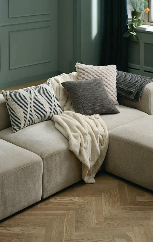 1) Zierkissen BERBERIS Bezug aus Baumwolle/Polyester. Jacquardgewebe. 60x40 cm 2) Kuscheldecke KALKLOK 100% Polyester (50% recycelt). Kunstfell. 130x170 cm 3) Zierkissen SKOGFIOL Bezug aus Polyester/Polyamid/Elasthan. 45x45 cm 4) Zierkissen HVIDBLOMME Bezug aus 100% Polyester. Kunstpelz. 45x45 cm