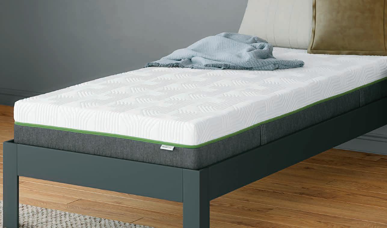 22 cm hohe Premium-Matratze mit einem Kern aus 2,5 cm flexiblem Comfort+ Schaum, 15,5 cm Polyätherschaum und 4 cm druckentlastendem AIR-Memoryschaum, der mit feuchtigkeitsabsorbierender Bambuskohle angereichert ist. Der Bezug ist waschbar und mit einer Anti-Milbenbehandlung versehen. 90x200 cm 449,-