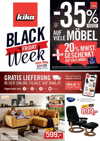 2) Gültig auf viele Möbel von der unverbindlichen Hersteller-Preisempfehlung. Ausgenommen in Inseraten und Prospekten beworbene Artikel, Warengutscheine, Serviceleistungen, in den Einrichtungshäusern gekennzeichnete Unglaublich Preise und Trends by kika Produkte, Küchenblöcke, Stressless, Team 7, Anrei, Stokke, Austroflex, Grüne Linie, Black Label, Tempur, Tom Tailor, Henders & Hazel, Leonardo, Musterring, Sedda Katalogbestellungen, Elektrogeräte und Zubehör, Set One by Musterring, Schösswender Katalogbestellungen, Badewannen, Duschen, Schöner Wohnen, Flexa. Gilt nur für Neuaufträge und ist nicht mit anderen Aktionen kumulierbar. Auch im Onlineshop erhältlich. Gültig von 23. bis 29.11.2021. Weitere Informationen auf www.kika.at.
