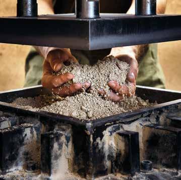 Unikate. Hochwertige Tonund Lehmerden sowie Schamotte bilden die Basis der Fliesen. In der Manufaktur wird jeder Fliesen-Rohling einzeln in Form gepresst.