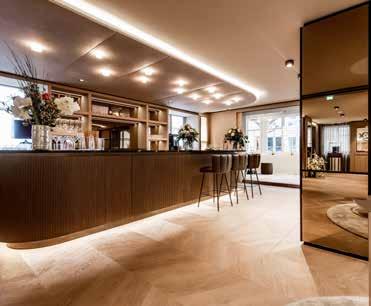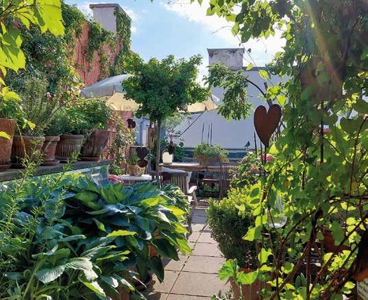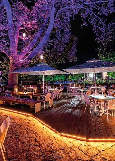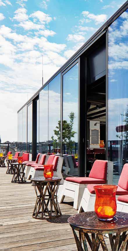 GARNIERT DEN GIN Lichtdurchflutet, mit üppigen Grünpflanzen garniert, thront das Chez Bernard unter einer markanten Glaskuppel auf dem Hotel Motto. Auf der Speisekarte des Restaurants stehen moderne österreichische Gerichte mit französisch-mediterranen Einflüssen. Das kommunikative Herzstück ist die spektakuläre Dachterrasse mit Panoramablick. Angesagte DJs sorgen für den passenden Sound. Die perfekte Location für unvergessliche Sundowner. •