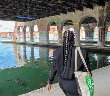 Die Mitglieder des Mahku-Kollektivs, die dem Amazonas-Volk der Huni Kuin angehören, haben die Fassade des zentralen Pavillons bemalt. Die bunten Tier- und Pflanzenmotive, denen oft zu begegnen ist, fordern dazu auf, Bewertungsmechanismen zu hinterfragen. Identität und Zugehörigkeit fokussiert die Malerin Moufouli Bello in ihren leuchtend blauen Frauenporträts im Pavillon des erstmals vertretenen Landes Benin neben den Plastiken aus Benzinkanistern von Romuald Hazoumè, der auch das Thema Sklaverei behandelt.