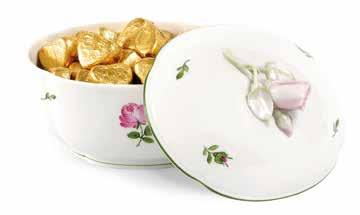 Die „Wiener Rose“ mit grünem Rand, umrahmt von Knospen und Blattstreuern, zählt bis heute zu den beliebtesten Motiven der 1924 entstandenen Einzelblumenserie. Ein minimalistisches, farbenfrohes Design –subtil und dennoch stylish.