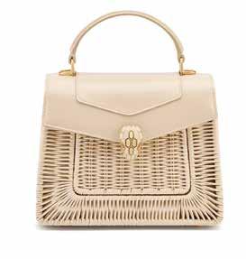 Die Serpenti Forever Top Handle aus Weidenholz verkörpert den Geist endloser italienischer Sommertage. Im Rahmen eines kunstvollen Handwerksprozesses wird das natürliche Material von Hand geflochten. Die Klappe und der Griff sind aus Kalbsleder in Ivory Opal gefertigt.