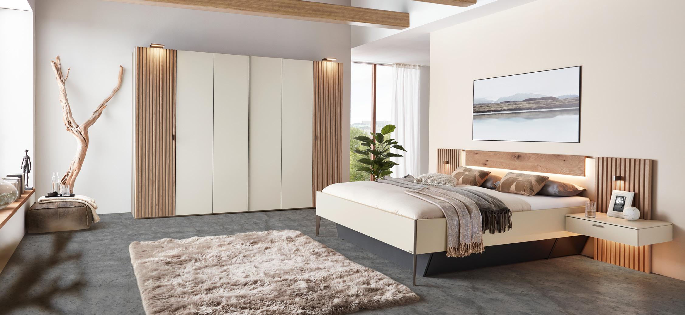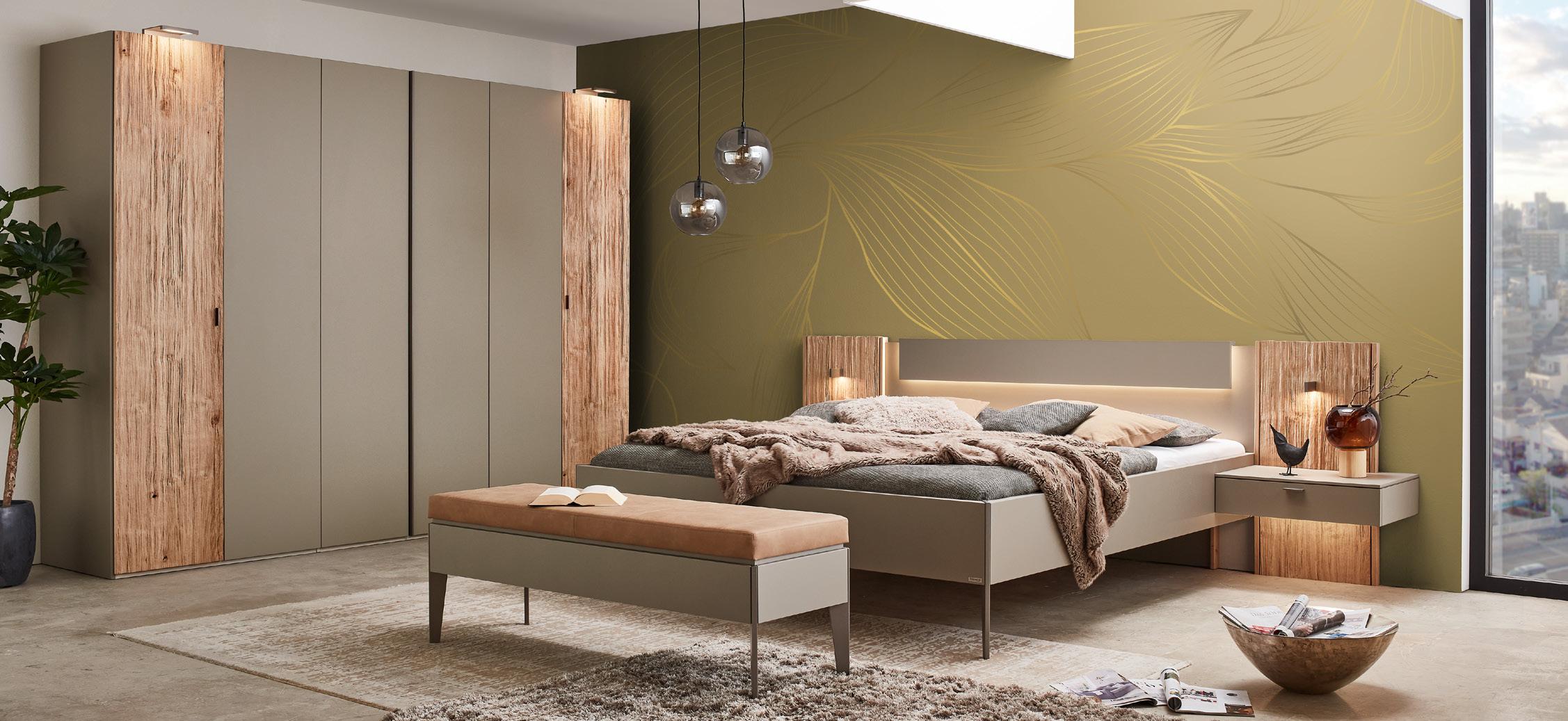 Von hell und puristisch bis kontrastreich und ausdrucksstark –diese Programm überzeugt durch seine unendliche Gestaltungsvielfalt und schenkt selbst anspruchsvollsten Schlafbedürfnissen individuellen Raum. Sie haben die Wahl: Kombinieren Sie die champagneroder fangofarbenen Lackmöbel mit