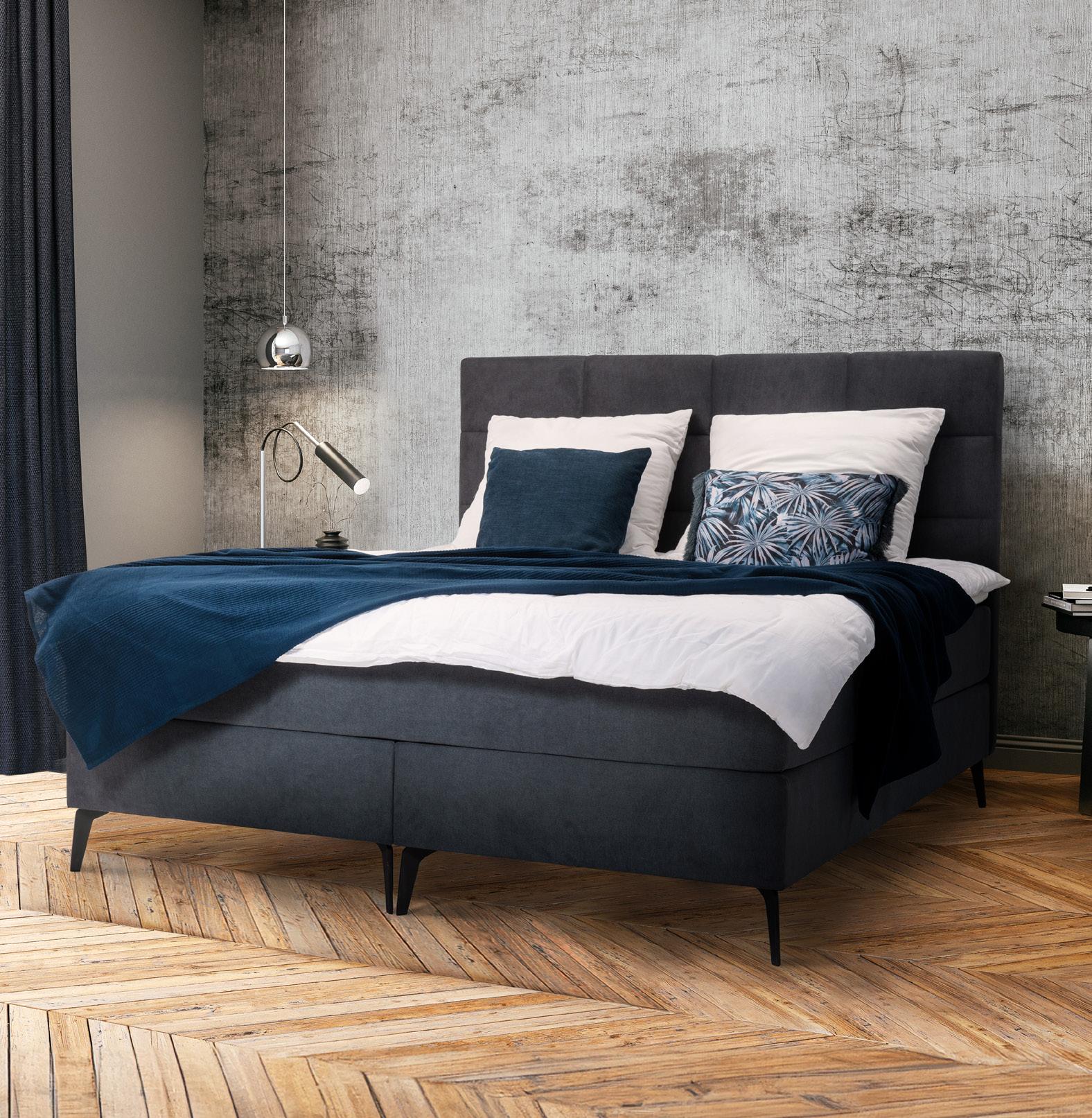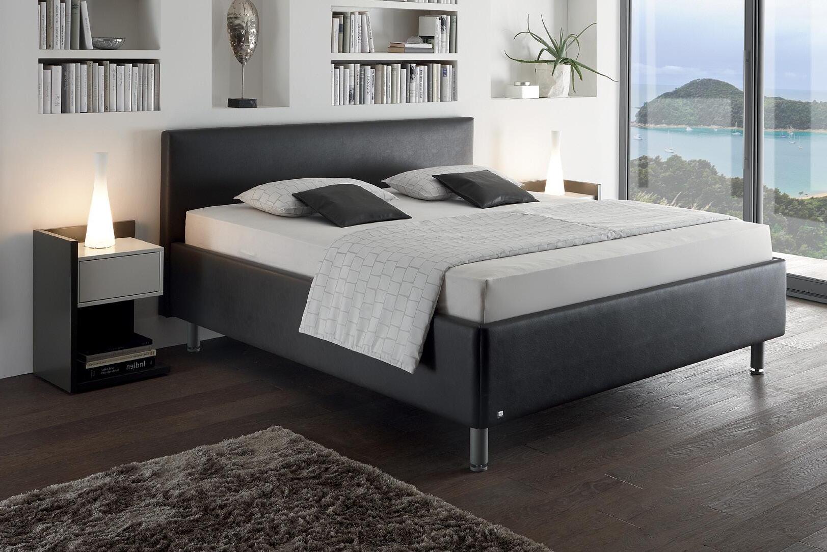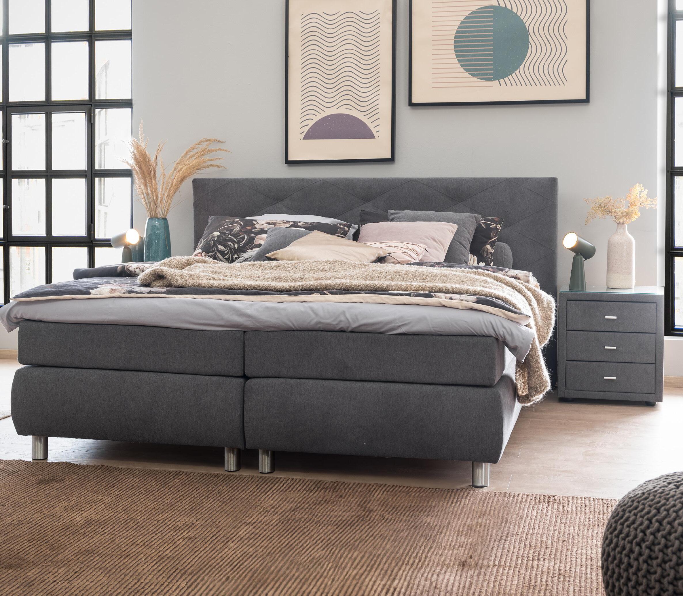 Polsterbett CASA, Bezug Textilleder anthrazit, best. aus: Bettunterbau inkl. Bettkasten, Metallfüße chr 2 x M7 Taschenfederkern in H2 oder H3,2 x Lattenrost inkl. Kopfteilverstellung, jeweils in 90 x 200 cm, Liegefläche ca. 180 x 200 cm. Ohne Plaid, Kissen und Deko
