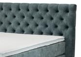 Luxus-Boxspringbett M+W, Bezug Stoff, hohes Kopfteil mit Steppung, Partnermatratze Tonnentaschenfederkern H3/ H4, inkl. 10 cm Luxus-Topper, Liegefläche ca. 180x200 cm. Ohne Kissen, Plaid und Deko.
