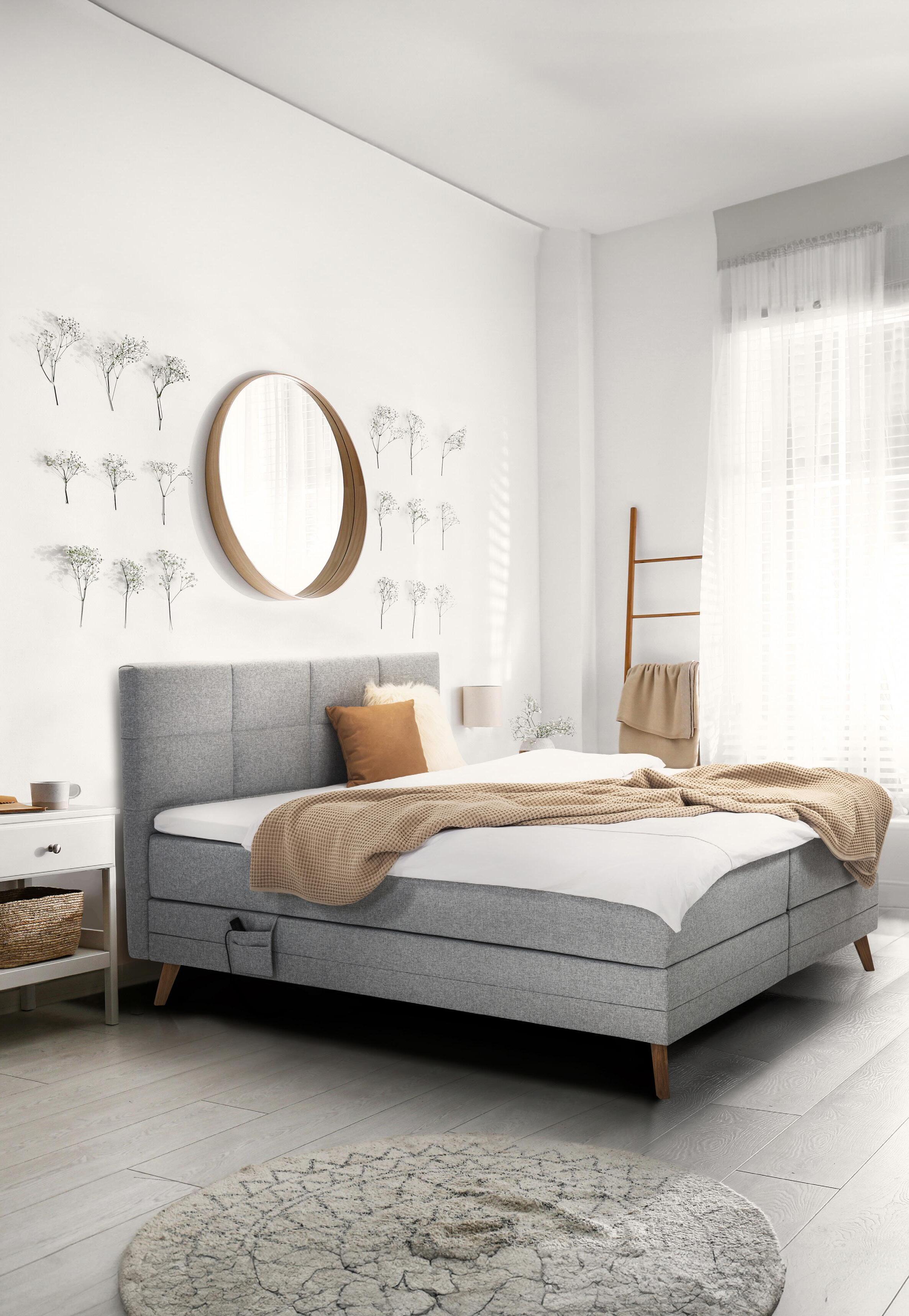 , Bezug Stoff, Alufuß, Bettkasten mit Stauraum, Lattenrost mit motorischer Verstellung, 14 Doppellattenelementen, seitlicher Öffnung, geeignet bis zu einem Körpergewicht von 110 kg, Matratze mit 7 -Zonen -Kaltschaumkern, mit Beckenkomfortzone, Schulterkomfortzone, Kopf- und Fußzone, Bezug mit 4-seitigem Zipp