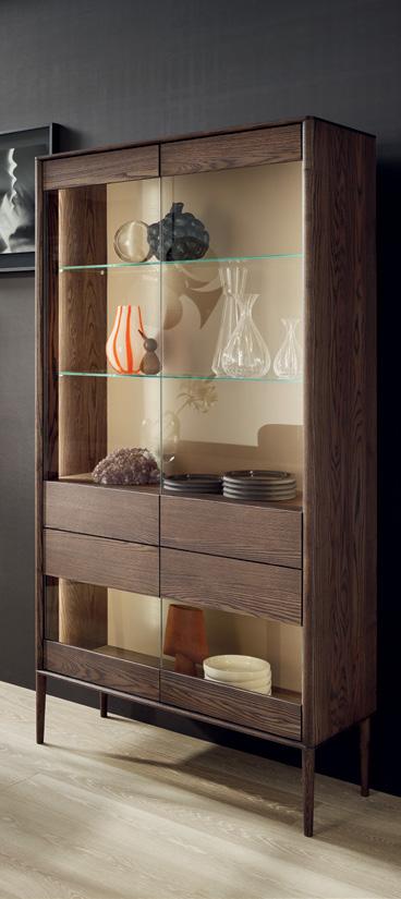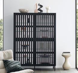 Der Vitrinenschrank als spannende Neuinterpretation des Lamellenschranks erinnert in seiner Ästhetik an traditionelles, japanisches Design.