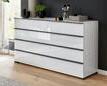 Als optimale Ergänzung für den Wohnbereich stehen das variabel beleuchtbare Wandbord sowie ein fein mit Glas verziertes Lowboard zur Verfügung.