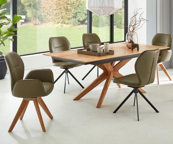 Entdecken Sie den einzigartigen Charakter der zeitlosen, gemütlichen Massivhölzer. Ihrem Wohn- oder Speisezimmer verleihen Sie mit diesen Möbeln einen warmen, modernen Massivholz-Look mit besonderer Wohlfühl-Atmosphäre. Durch echtes Massivholz bekommen Ihre Traummöbel eine weiche Haptik und eine außergewöhnliche Holzoptik. Zeitloses Eichenholz bietet immer ein hochwertiges, gemütliches Design. Es ist hell, freundlich und hat einen besonderen Charme, der die Natürlichkeit und die Holzstruktur zusätzlich betont. Eiche ist ebenso traditionell wie modern, nachhaltig und besonders alltagstauglich durch seine natürliche Härte.