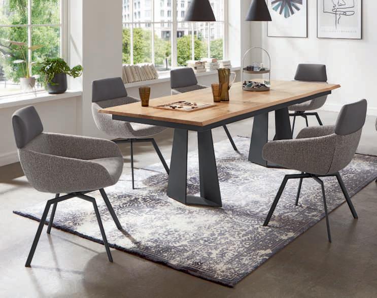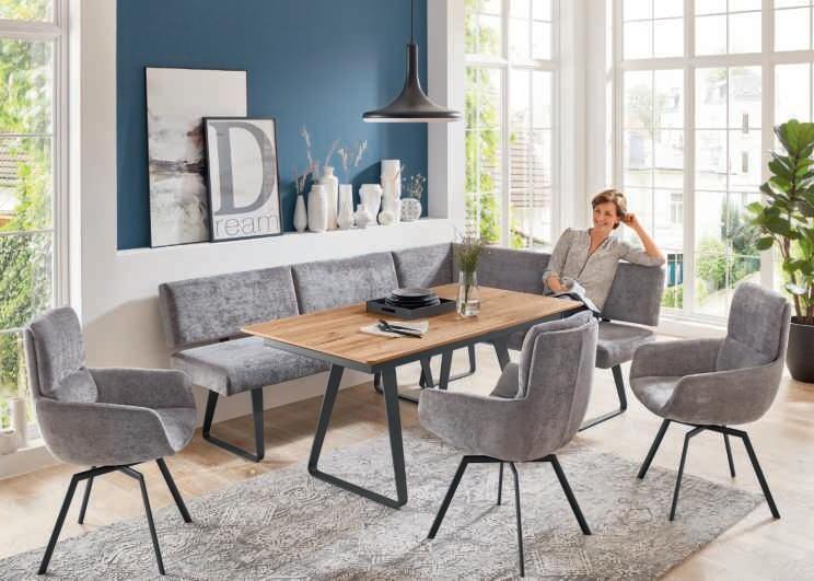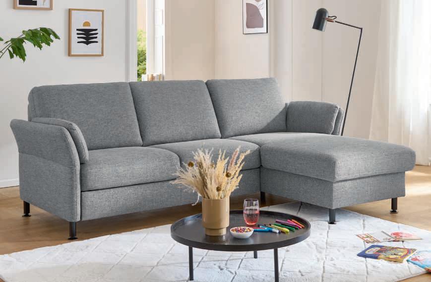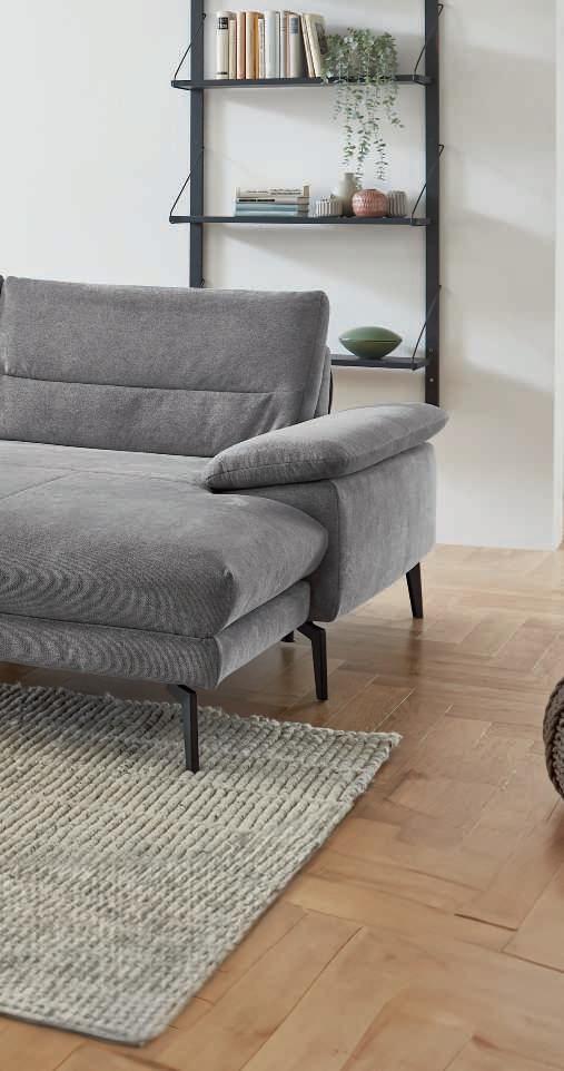 Unica steel, Metallfuß schwarz, best. aus: 2,5-Sitzer mit Armteil links und Canapé mit Armteil rechts. Stellmaß ca. 232x168 cm, ohne Zierkissen. Bezug: 85% Polyester, 15% Baumwolle. 489019