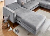 Bezug Stoff Cyber grey, Metallfuß schwarz, best. aus: 1-Sitzer-Kombielement mit Anstellhocker links, 2,5-Sitzer ohne Armteile und Canapé mit Armteil rechts, Stellmaß ca. 208x345 cm. Bezug: 100% Polyester. 489245