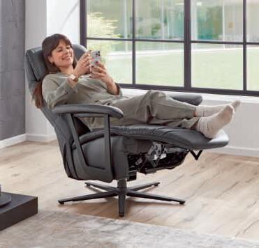 RELAX-SESSEL 7387-EASYSWING, Bezug Leder kohle, Armlehnen und Sternfuß Metall anthrazit, manuell verstellbar, Rücken mit Gasdruckfeder, getrennte Verstellung von Rücken und Fußteil, ca. B75/H113/T87 cm. 1849,-