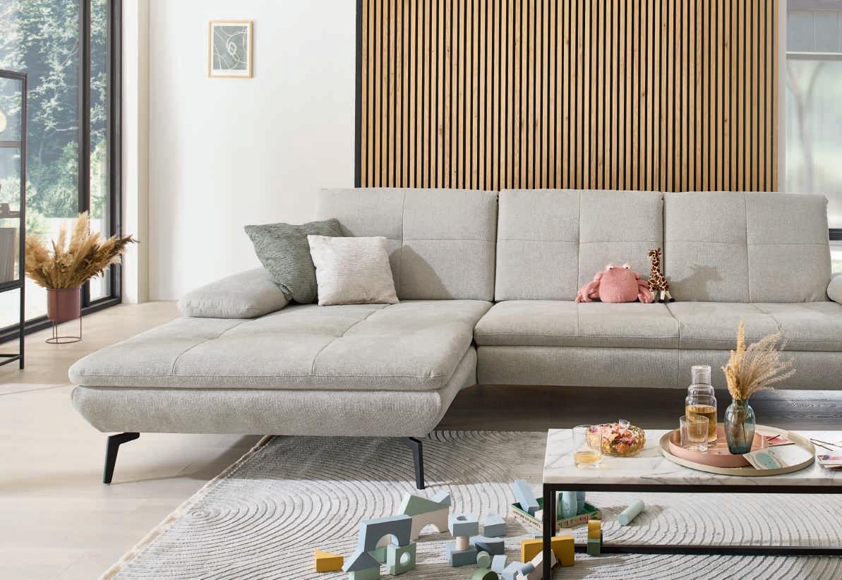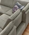 Bezug Stoff Holiday alu, Metallfuß matt, best. aus: 2-Sitzer mit Armteil links, Rundecke, 2,5-Sitzer ohne Armteil, Rücken Spannstoff, und Canapé mit Armteil rechts, Stellmaß ca. 240x330x163 cm. 489048
