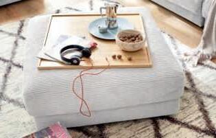 Das originelle Armteil-Holztablett passt optimal und ersetzt einen Beistelltisch, ca. 27x40 cm. Gegen Mehrpreis Praktisches Zubehör: Holztabletts für die Armlehne oder den Hocker, z.B. ca. 70x70 cm. Gegen Mehrpreis
