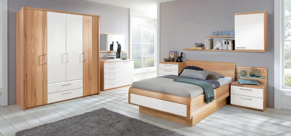SCHLAFZIMMER-PROGRAMM, Front Lack Weiß, Korpus und Absetzungen Kernbuche Echtholz-Furnier. 104048-050