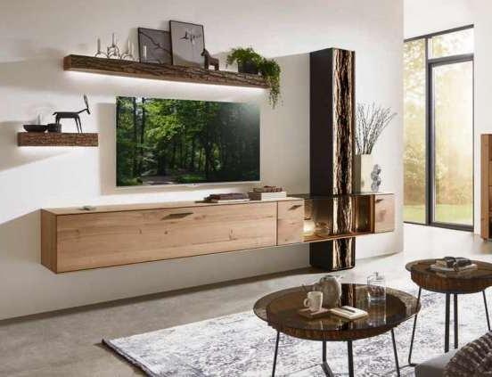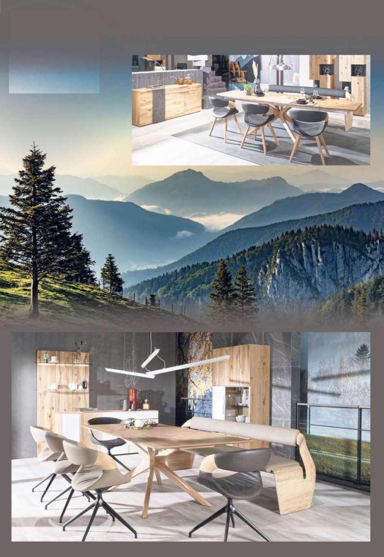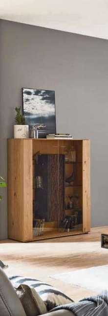 Bei diesem Programm treffen Purismus und Ursprünglichkeit aufeinander: Ausdrucksstarke Massivholzmöbel mit rauen Oberflächen und typischen Holzmerkmalen liegen voll im Trend Ein spannender Kontrast entsteht durch das moderne, geradlinige Design des Programms Das Highlight sind die Rückwände aus echter Rinde!
