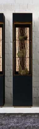 Vitrine, Außen mit Metallverkleidung, Metall anthrazit, Applikation aus echter Rinde, B/H/T ca 43x205x44 cm