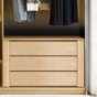 Passend dazu beweist der Jalousienschrank mit dem ausziehbaren Tablarboden sein großes Stauraumtalent