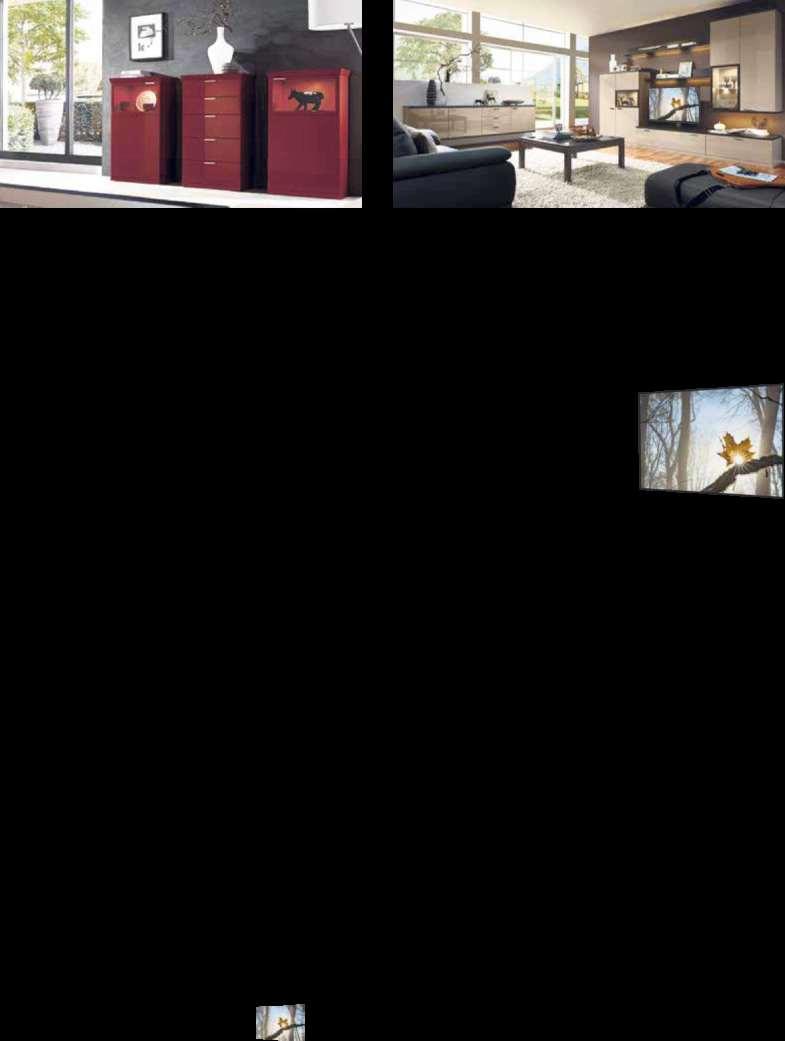 SieliebenklareStrukturen?DasSpielmit offenenundgeschlossenenElementenundeine moderneLichtinszenierungmachennochmehrdaraus UmdieStimmungzuprägen,stehenIhnen 8Furnierhölzerund24LackfarbenzurAuswahl.