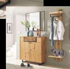 Wohnprogramm, Front und Korpus Salzkammergut Alteiche natur gebürstet außen furniert, innen Nachbildung, Metallgriffe carbon grau